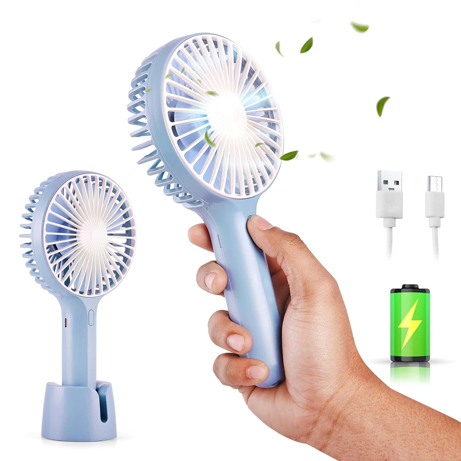 - 🎮 Multi-Utility Handy Fan with USB Charging Compatibility – This rechargeable mini fan Charging Supports USB charging from mobile adapter, power bank, laptop, or car—this fan is your go-to electric fan portable. Doubles as a car fan, makeup fan, gaming cooler or neck fan. Compatible with USB fan mini, type C, and other USB ports. Truly a versatile mini charging fan.