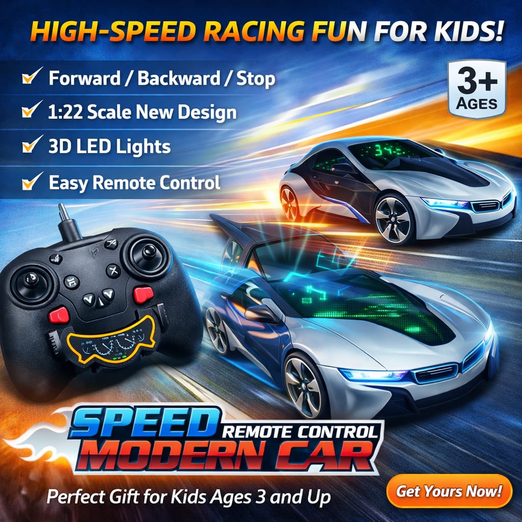 Bring home the thrill of racing with the Speed Modern RC Carโa stylish, high-speed toy car designed for endless fun and excitement. With its sleek futuristic design and smooth controls, this car is perfect for kids who love action and adventure.