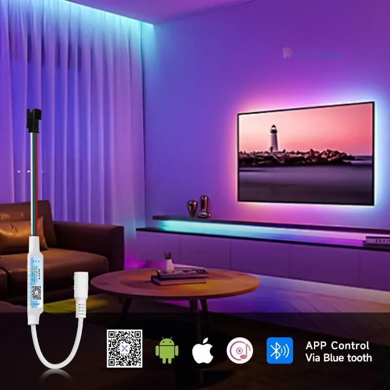 - Bluetooth App Control with Music Sync Mode – Auslese Robotics SP621E LED controller allows mobile app control for addressable LED strip lights and syncs lighting effects with music beats